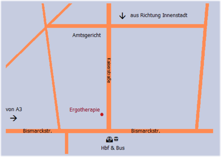 vorbei, weiter geradeaus auf der “Kaiserstraße”, bis kurz vor dem Hauptbahnhof. Praxis auf der